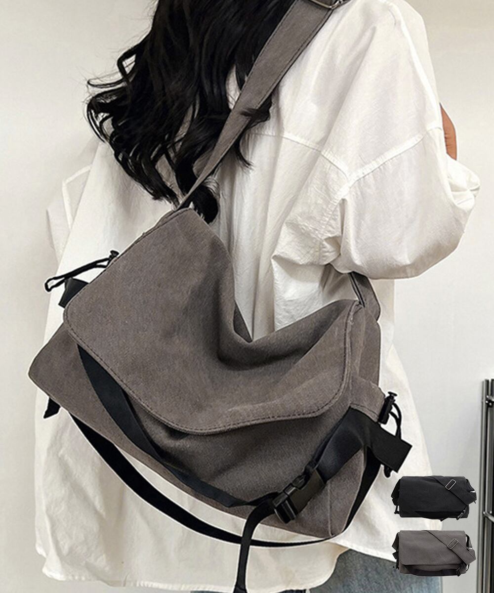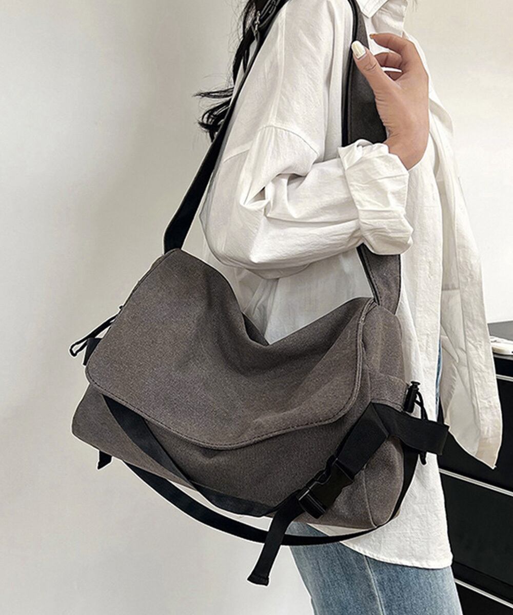 トレンドのキャンバス生地を使用したヴィンテージライクなデザインのショルダーバッグ